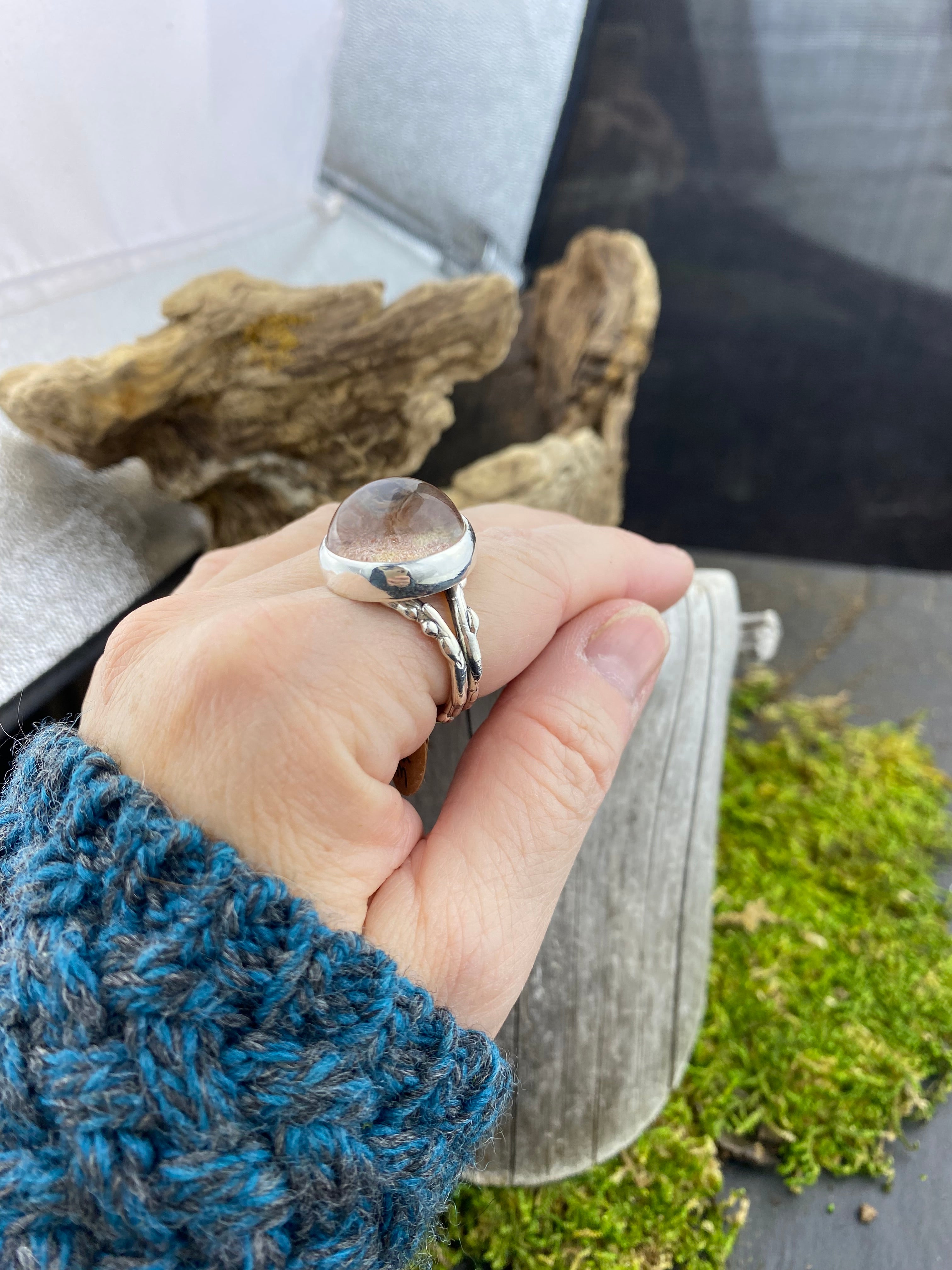 This is a really light and beautiful piece of Lodalite. This setting is detailed with gentle flow emerging from the stone. One of our newest designs, this is a truly one of a kind pendant! can be worn for all occasions, even for a walk in the woods!