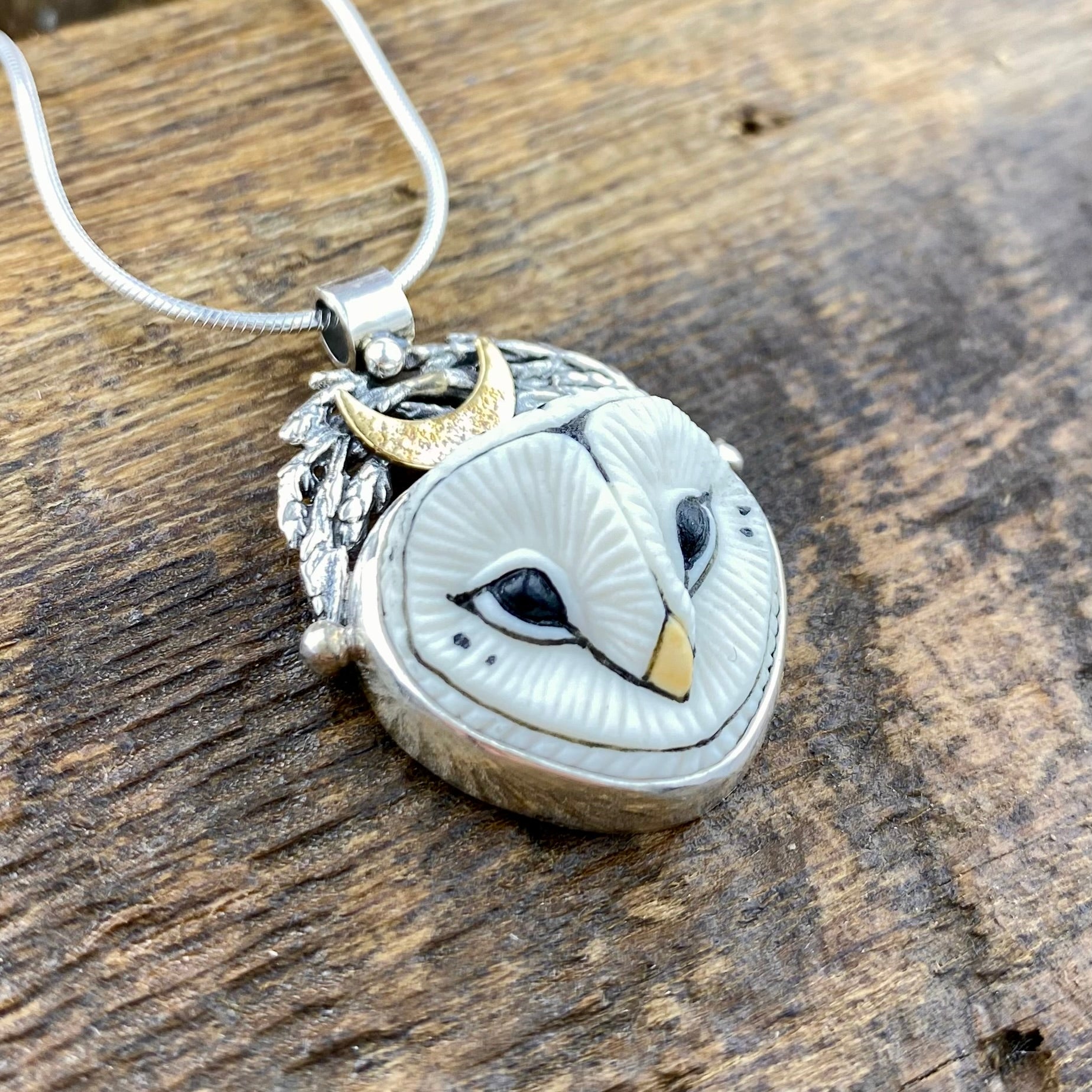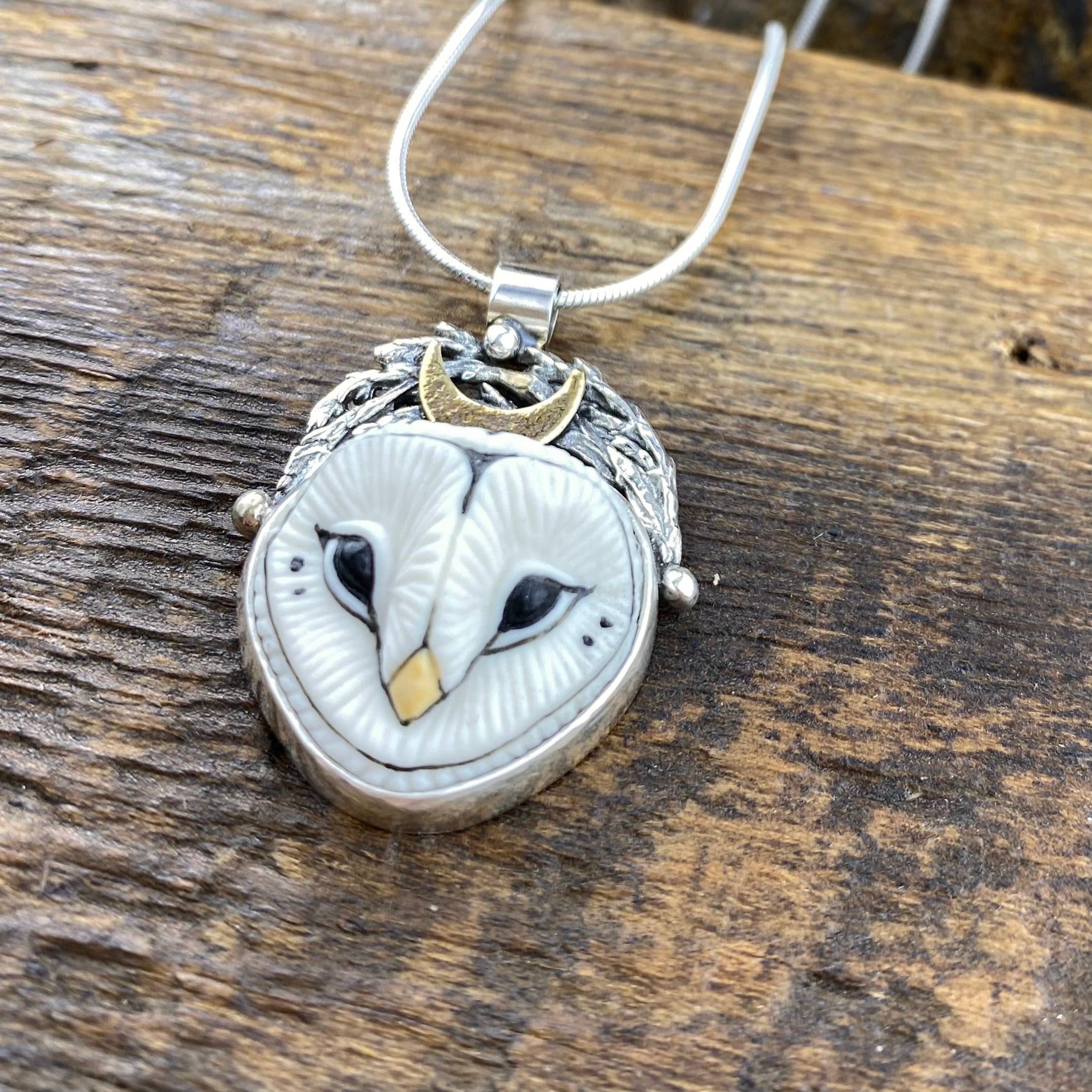 The magic and wonder of owl Medicine. This one of a kind soul piece is all about rooting and grounding... connecting to both the earth and sky, this magical being teaches us the lessons of the tree of life 🌳a unique Handcrafted amulet using sterling silver, and a rare handmade porcelain painted owl from the beautiful Lanna Mana. this beauty is for a special being who will gracefully heed her call ❤️