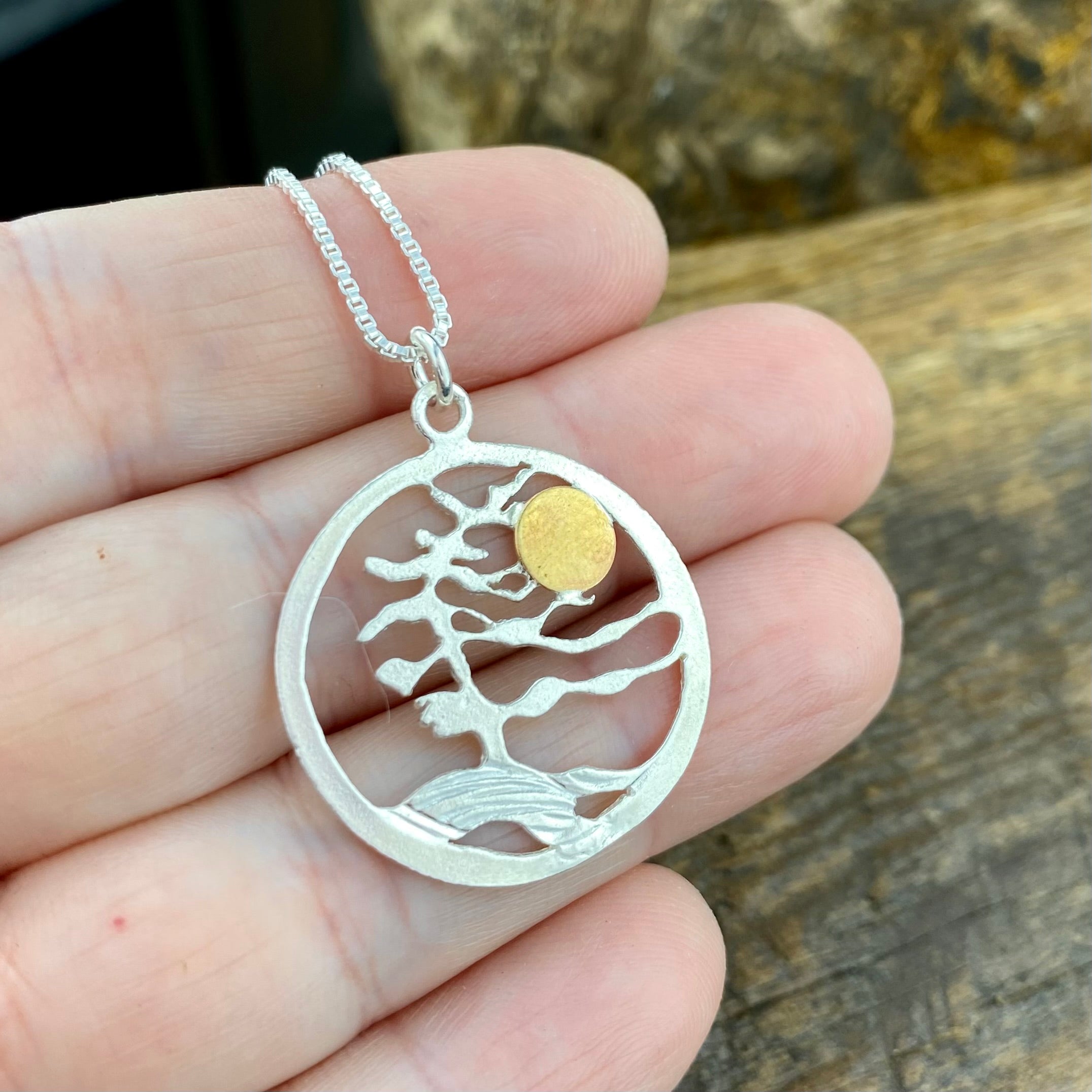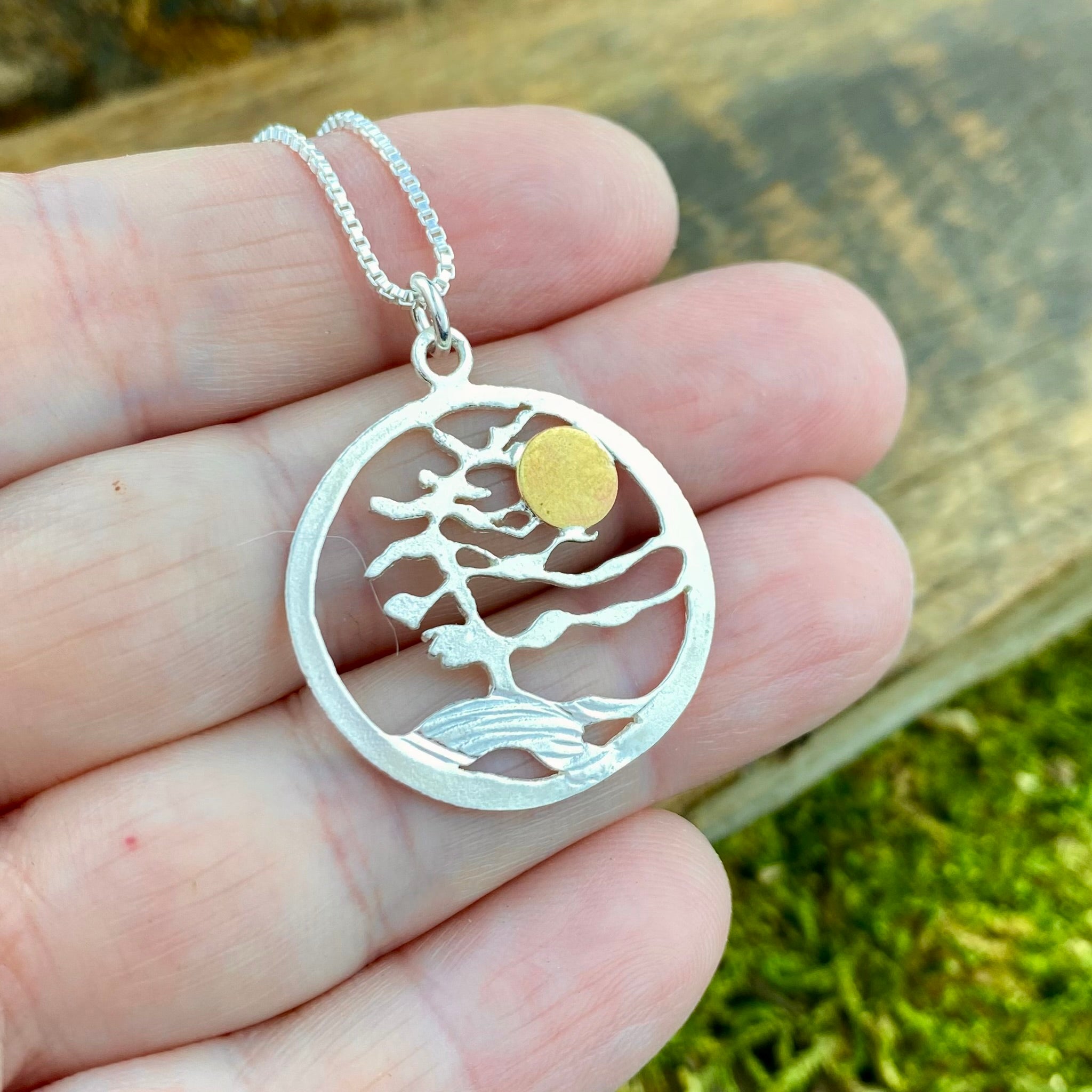 Round Sunset Windswept Georgian Bay Pine Pendant