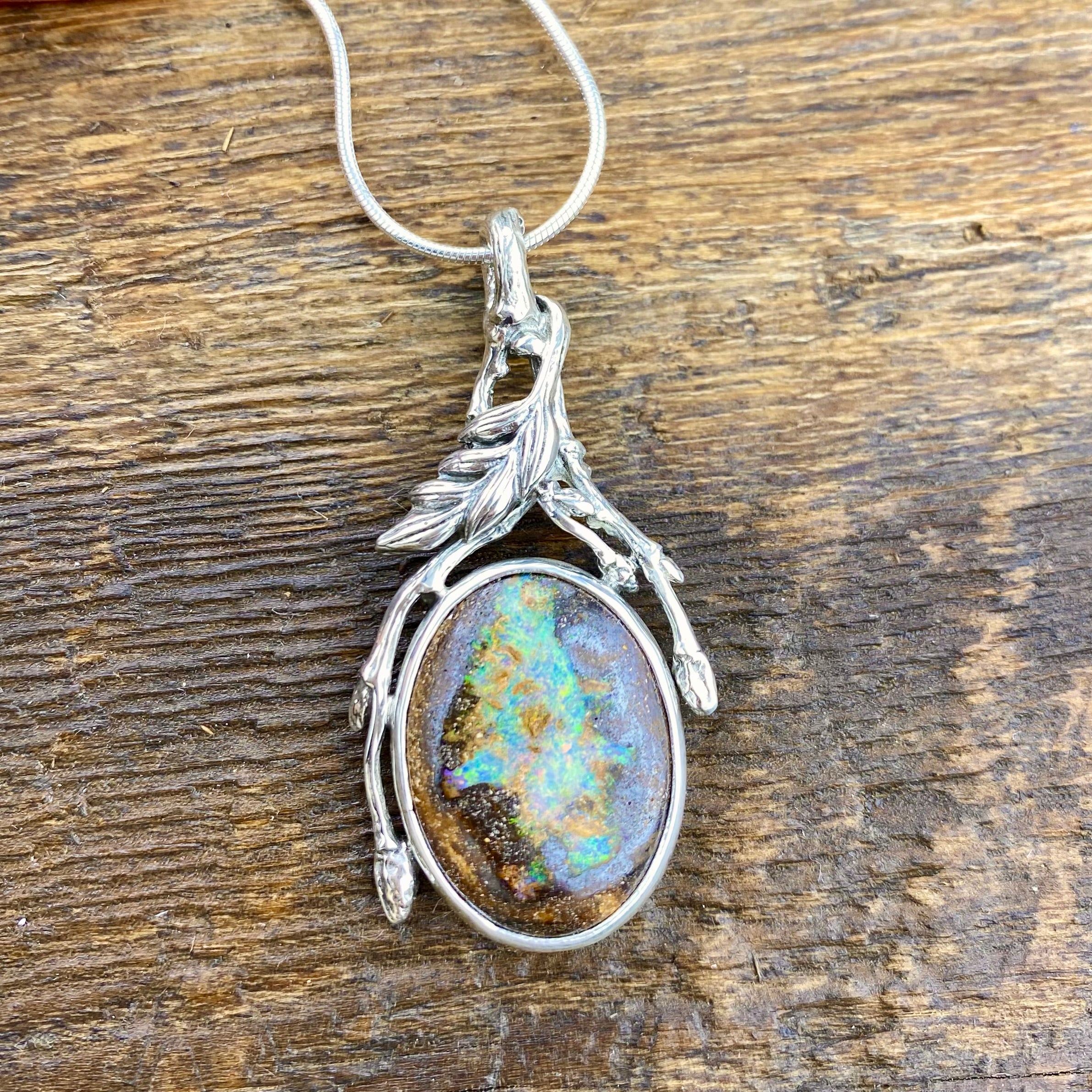 This gorgeous one a kind piece features such a Lovely piece of Natural solid Boulder Opal, full of unique detail and colour!