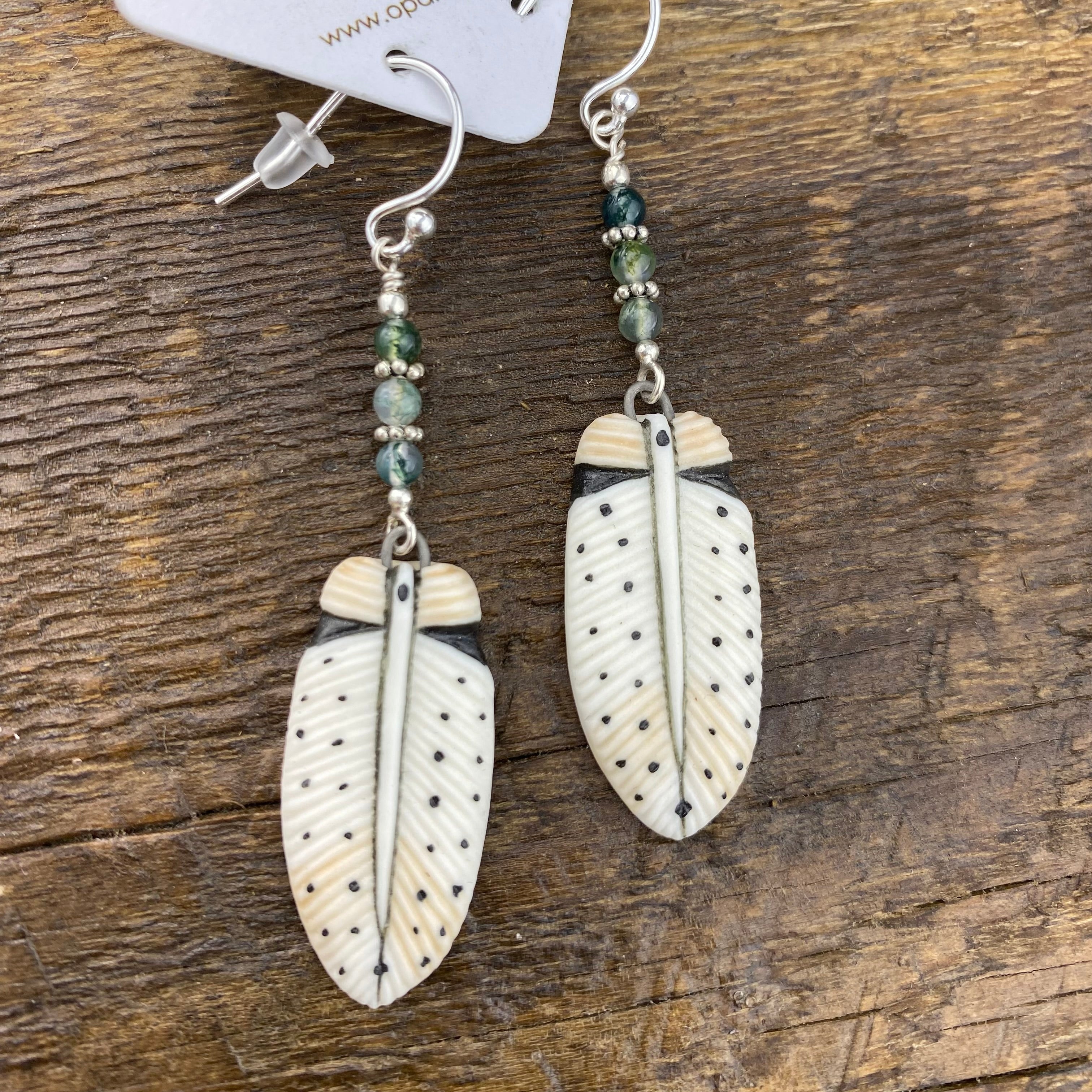 These sweet little earrings are handmade with so much love. featuring handmade and painted porcelain owl feathers with all sterling silver hooks and findings. Balanced and asymmetrical, these beauties will flutter on your ears. Includes rubber stoppers.